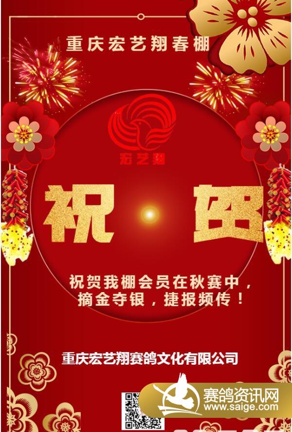 重庆宏艺翔(春棚)恭贺我棚会员取得佳绩 尊敬的会员: 您们好!宏艺翔春棚热烈恭贺我棚会员取得佳绩,但我们的会员交的公棚比较多,我们不能及时得知您获奖的信息,当您的爱鸽获奖时,请您及时联系我们,让我们共同分享您的快乐!
