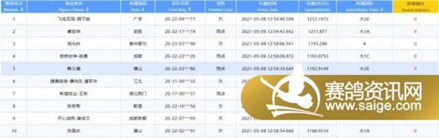5月8日12:54,飞成百冠-颜于皓的一羽赛鸽以1212.1972米/分的速度率先归巢,获得冠军;唐定坤的一羽赛鸽以1211.877米/分的速度紧随其后,获得亚军;饶光林的一羽赛鸽以1193.286米/分的速度获得季度。其余赛鸽们紧随大军陆续归巢。预祝所有鸽友的赛鸽都能取得好成绩!