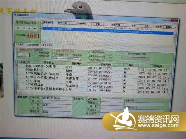 2021年5月7日晚20:39,集鸽工作圆满完成,总共集鸽4681羽。