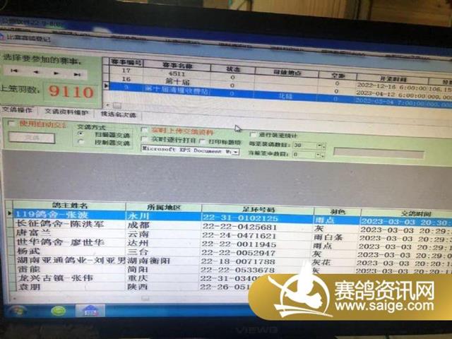 重庆宏艺翔信鸽(春棚)2023年第十届40空距收费站于2023年3月3日在重庆市信鸽协会委派的裁判组及鸽友代表,直播媒体的共同监督见证下正式开启:本次集鸽裁判长:邓勇(国家级裁判)司放长:陈建华(一级裁判)裁判员:袁忠明(一级裁判)以及璧山区信鸽协会主席:陈俊,巴南区鸽友代表:张远朝等共同参与。于下午14:36分第一羽环号:22-24-0133629开始集鸽,流程规范,直至最后一羽22-31-0102125上笼完成,共计集鸽9110羽。以下是图片: