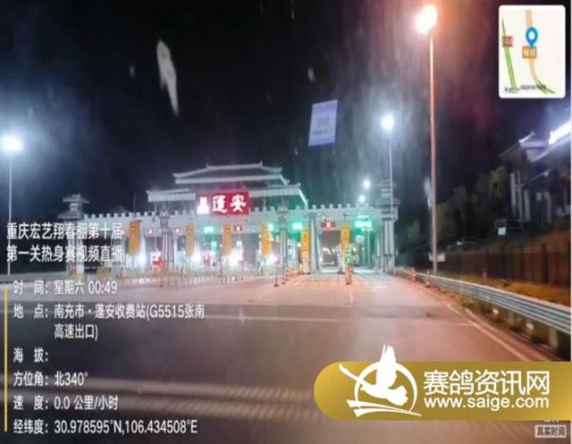 凌晨00:49分集鸽车从蓬安收费站下高速