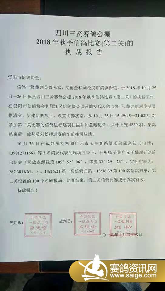 三贤公棚2018年秋季信鸽比赛(第二关)执裁报告