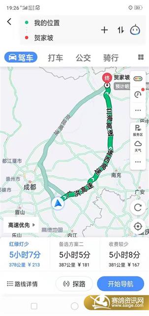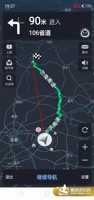 三贤公棚第二关预赛行车路线 四川三贤公棚280公里(第二关)预赛将于10月28日进行比赛,欢迎广大鸽友前来公棚参观、监督比赛。以下为我棚去往放飞地点的行车路线:约28日0点从资阳出发,途经遂宁、南部、阆中到终点站广元市贺家坡。