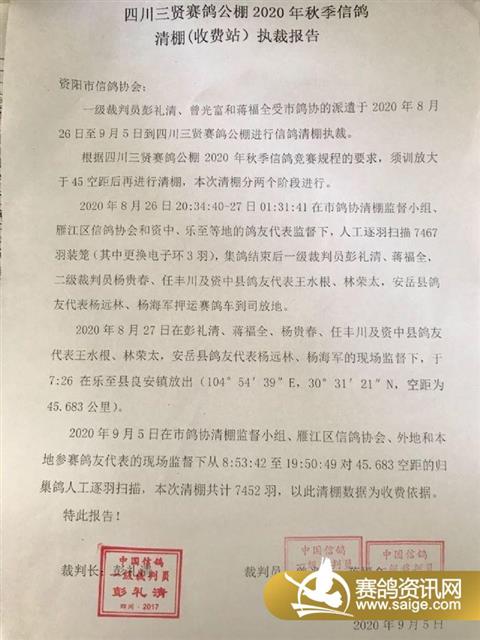 三贤公棚2020年秋季信鸽清棚(收费站)执裁报告