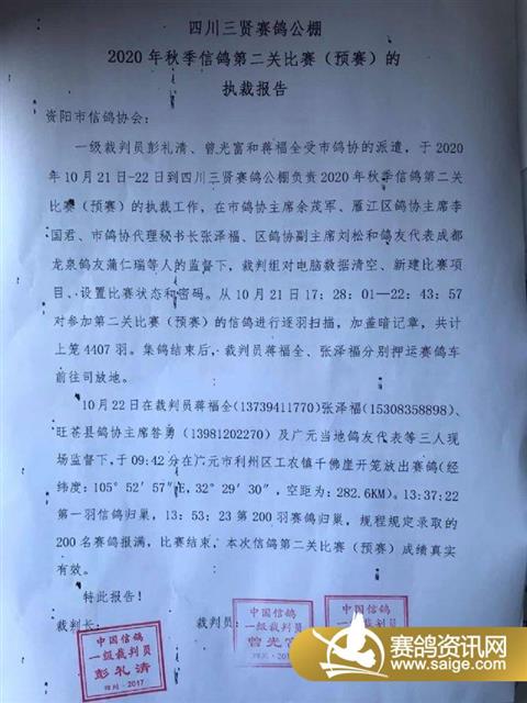 三贤公棚2020年预赛执裁报告及前200名
