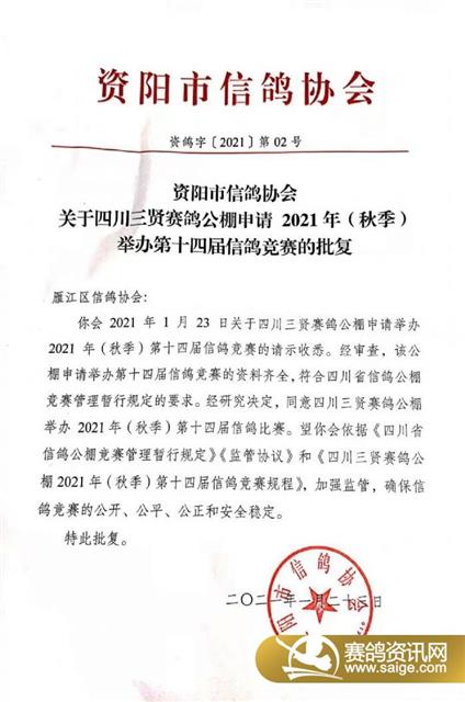 资阳市信鸽协会关于四川三贤赛鸽公棚申请2021 年(秋季)