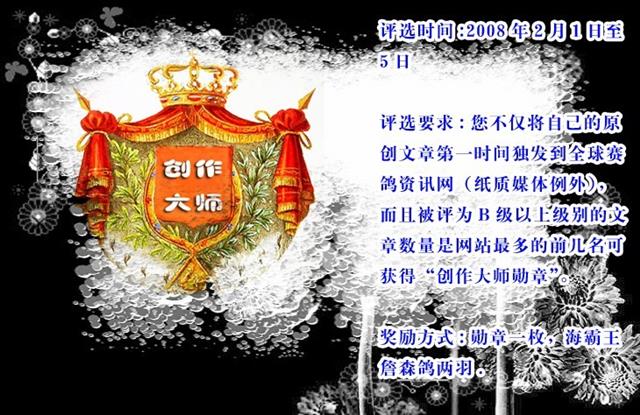 一年一度的秋赛即将来临,作为鸽友的您又是如何准备的呢? 欢迎广大养鸽爱好者撰文交流,全球赛鸽资讯网期待您的参与 创作大师勋章正在评选中