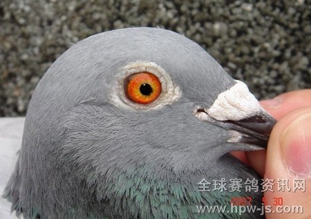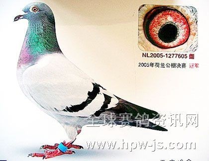 B05-2267935灰白条黄眼雌,贺伯特作出,大名鸽第1号直孙女。此鸽获2005年辽宁捷威公棚决赛A组亚军,B组冠军。