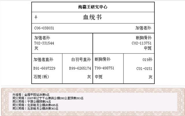 都江堰南桥公棚 1200羽冠军鸽主:朱益盛冠军脚环C07-09-123529 灰二线沙眼冠军父(海霸王)C06-09-037998灰二线沙眼