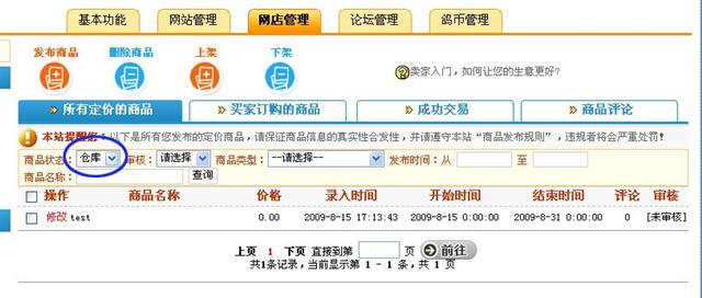 3、 卖家发布商品时,可先将商品放入仓库,需要时,在仓库中将商品上架。