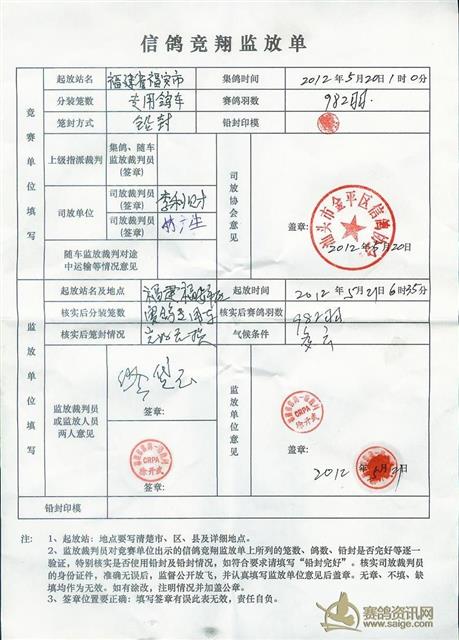 福安站成绩已公布,5天内无异议,福清 站集鸽晚颁发奖金。