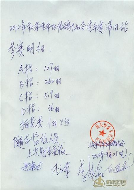 汕头市金平区信鸽协会2012年秋季汽车大奖赛莆田站明细