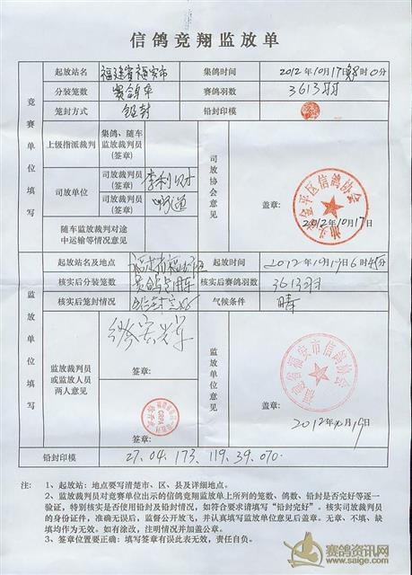汕头市金平区信鸽协会福安站开笼图像及监放表