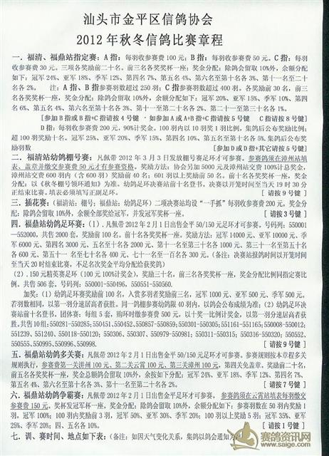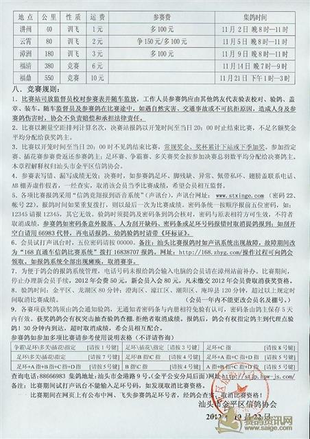 汕头市金平区信鸽协会2012年秋冬章程
