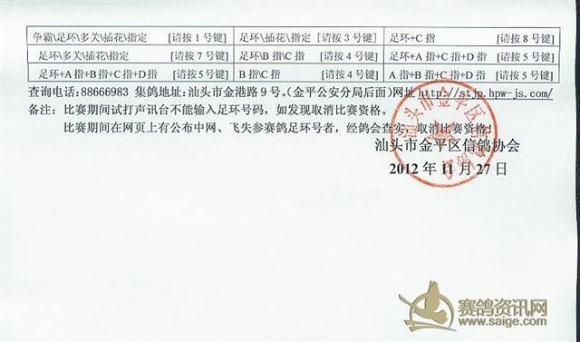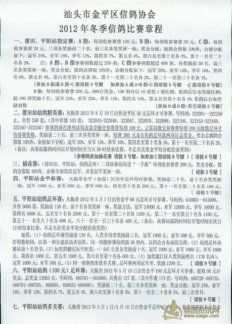 汕头市金平区信鸽协会2012年冬季章程