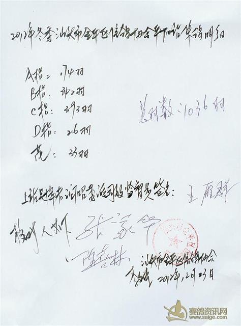 汕头市金平区信鸽协会2012年冬季平阳站明细表