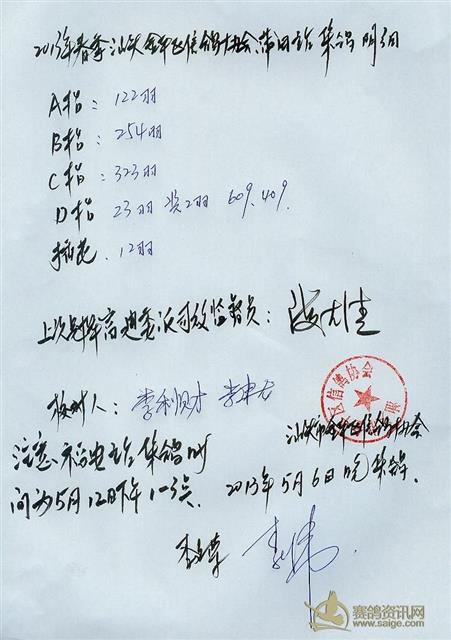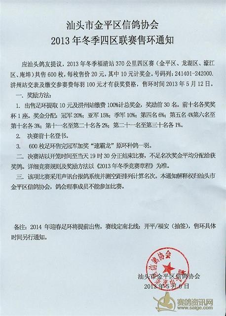 汕头市金平区信鸽协会2013年春季莆田站明细及冬季汕头区域赛售环通知