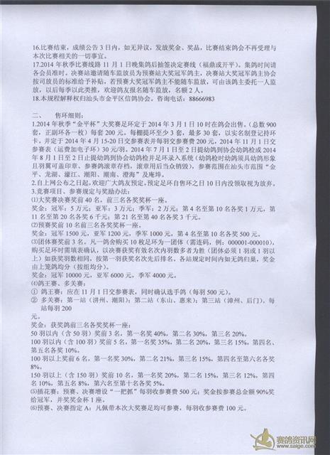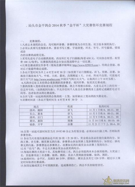 2014年秋季“金平杯”大奖赛售环通知(豪华型)