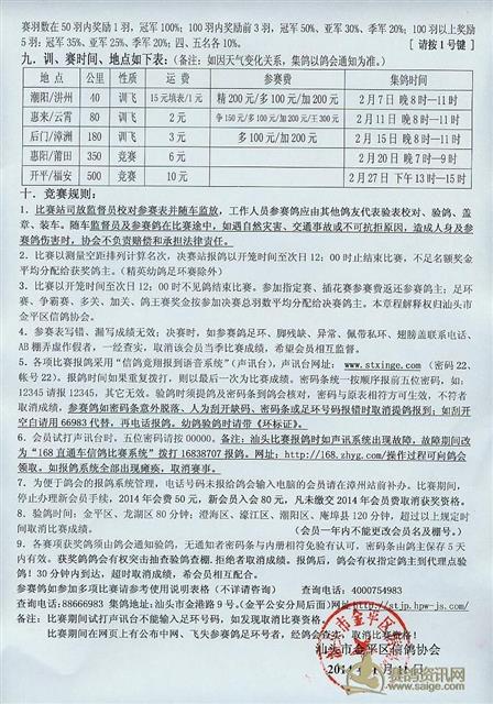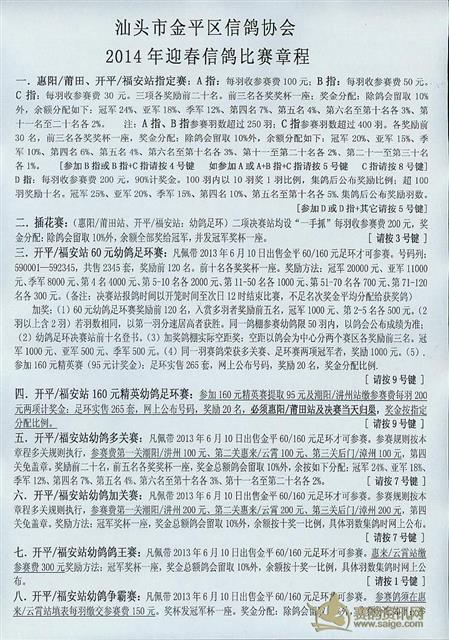 汕头市金平区信鸽协会2014年迎春比赛章程