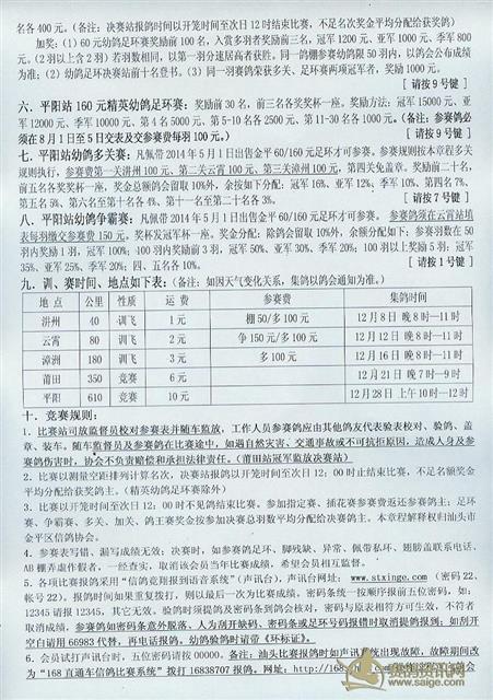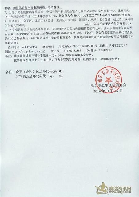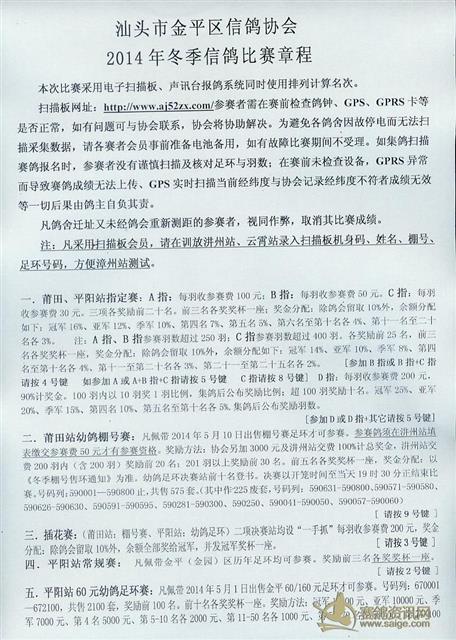 2014年汕头市金平区信鸽协会冬季比赛章程