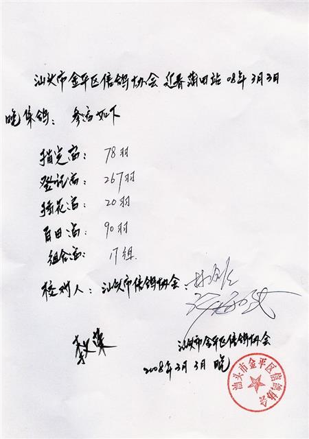 汕头市金平区信鸽协会2008年迎春莆田站明细表