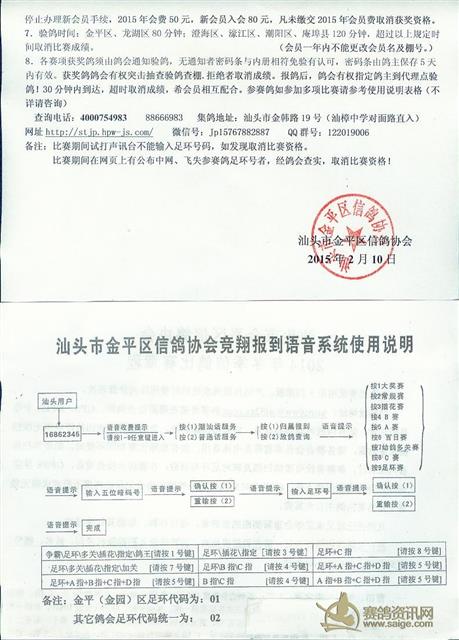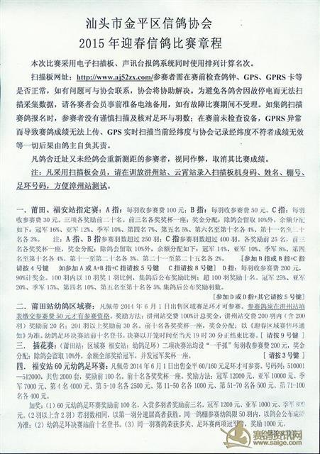 2015年汕头市金平区信鸽协会迎春比赛章程