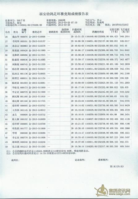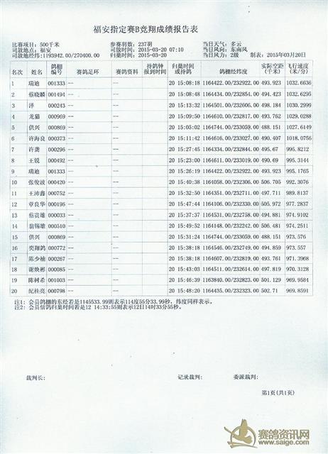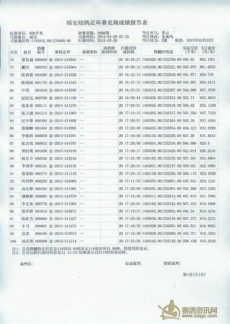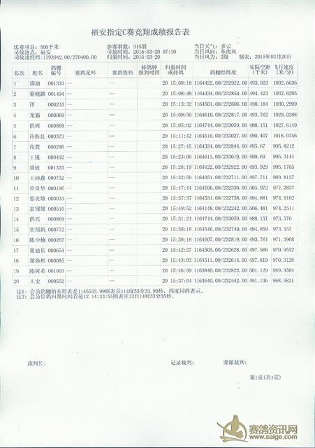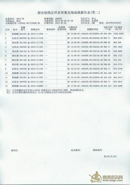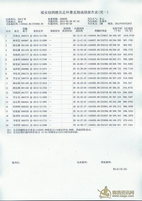 2015年汕头市金平区信鸽协会迎春福安站成绩(新)