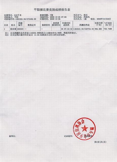 汕头市金平区信鸽协会08年秋季平阳站插花赛成绩表