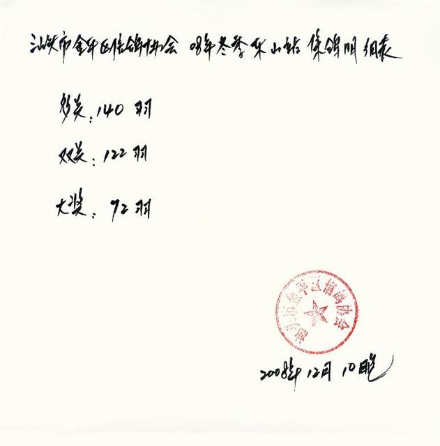汕头市金平区信鸽协会08年冬季东山站明细表