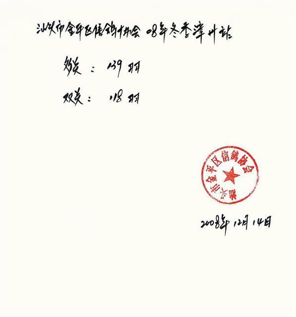 汕头市金平区信鸽协会08年冬季漳州站明细表