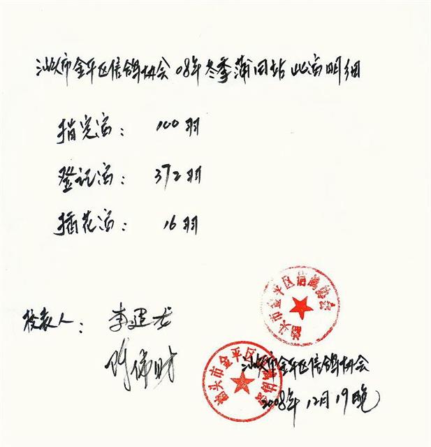 汕头市金平区信鸽协会08年冬季莆田站明细表