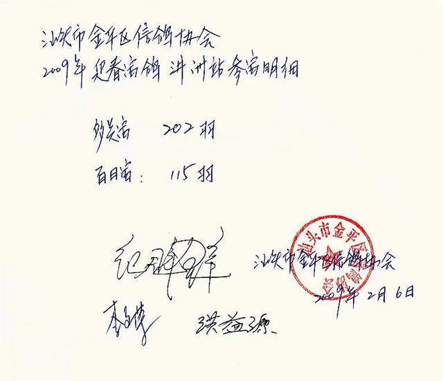汕头市金平区信鸽协会09年迎春汫州站明细表