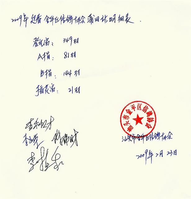 汕头市金平区信鸽协会09年迎春莆田站明细表