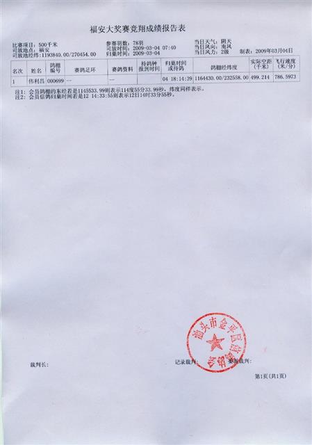 汕头市金平区信鸽协会09年迎春福安大奖成绩表