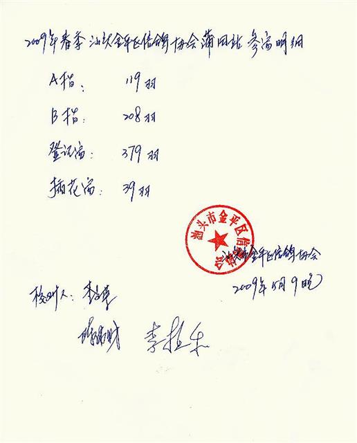 汕头市金平区信鸽协会09年春季莆田站明细表