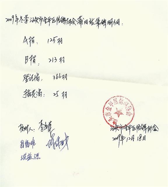 汕头市金平区信鸽协会09年冬季莆田站明细表