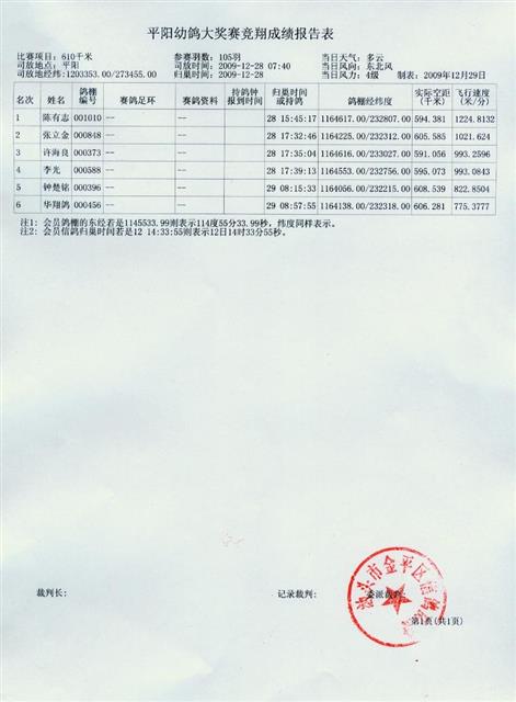 汕头市金平区信鸽协会平阳幼鸽大奖赛
