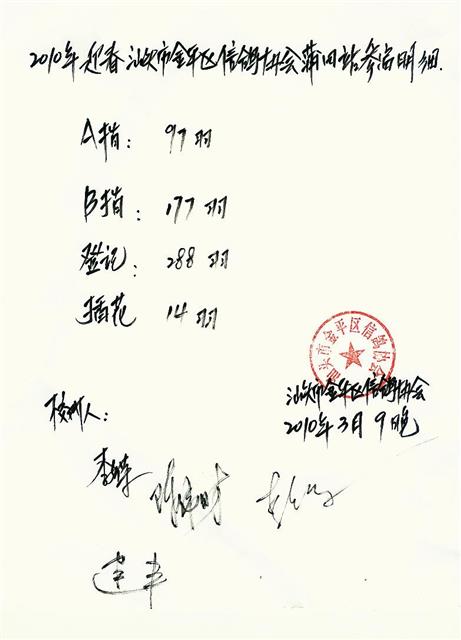 汕头市金平区信鸽协会2010年迎春莆田站明细表