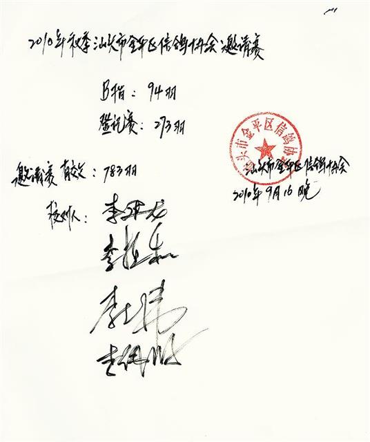 汕头市金平区信鸽协会2010年秋季赛前惠安站邀请赛明细表