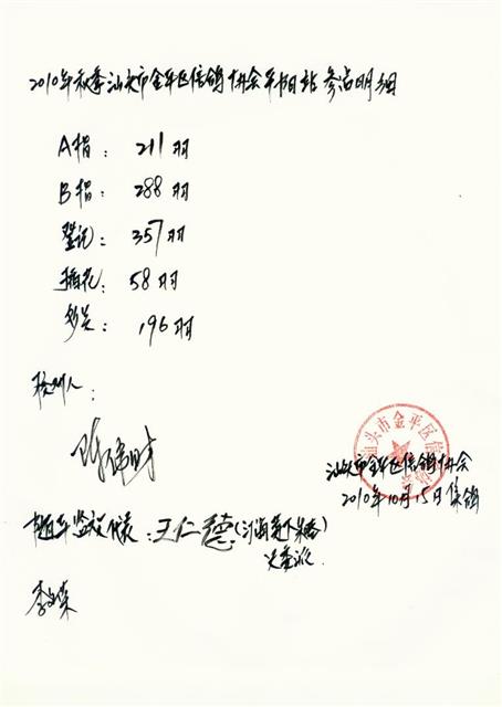汕头市金平区信鸽协会2010年秋季平阳站明细表