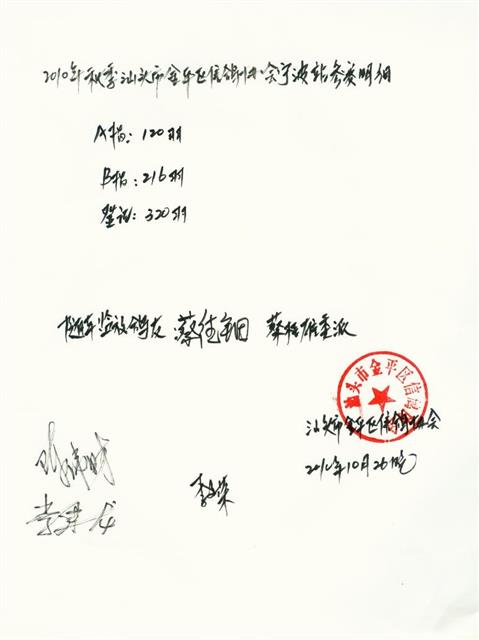 汕头市金平区信鸽协会2010年秋季宁波站明细表