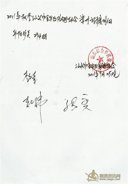 汕头市金平区信鸽协会2011年秋季漳州站明细表