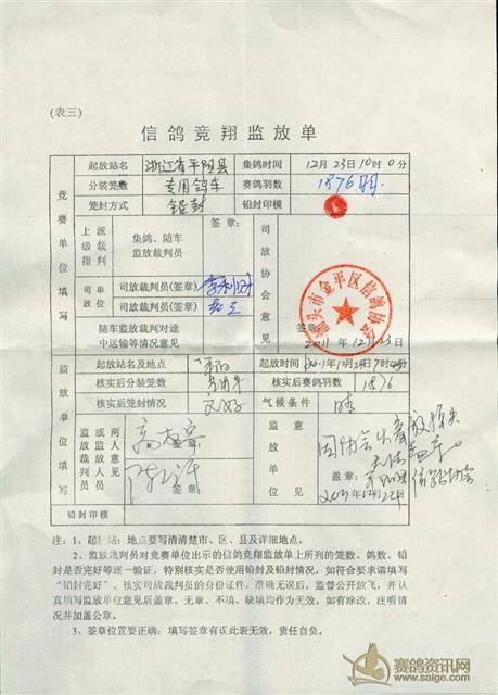 汕头市金平区信鸽协会2011年冬季平阳站开笼相片及监放表