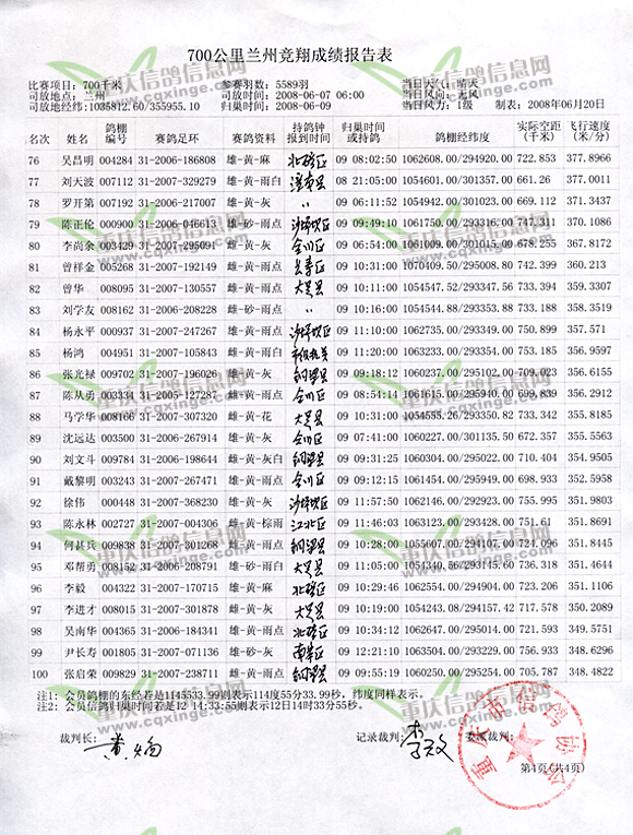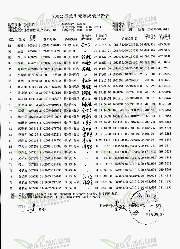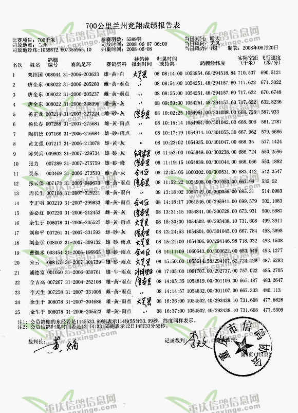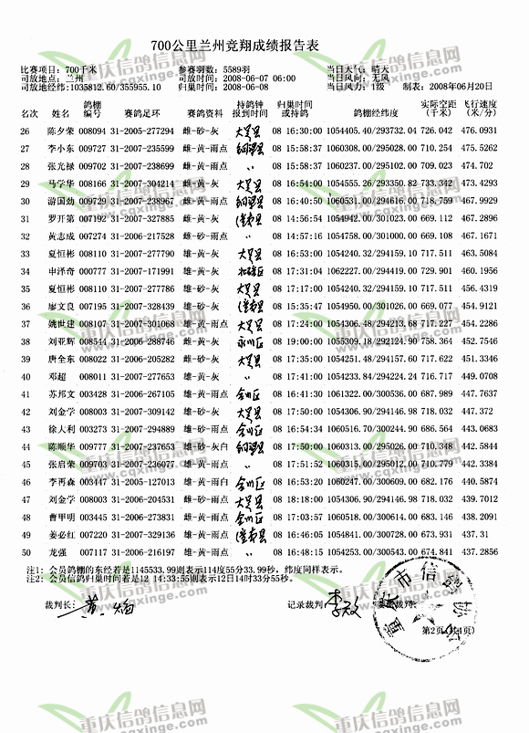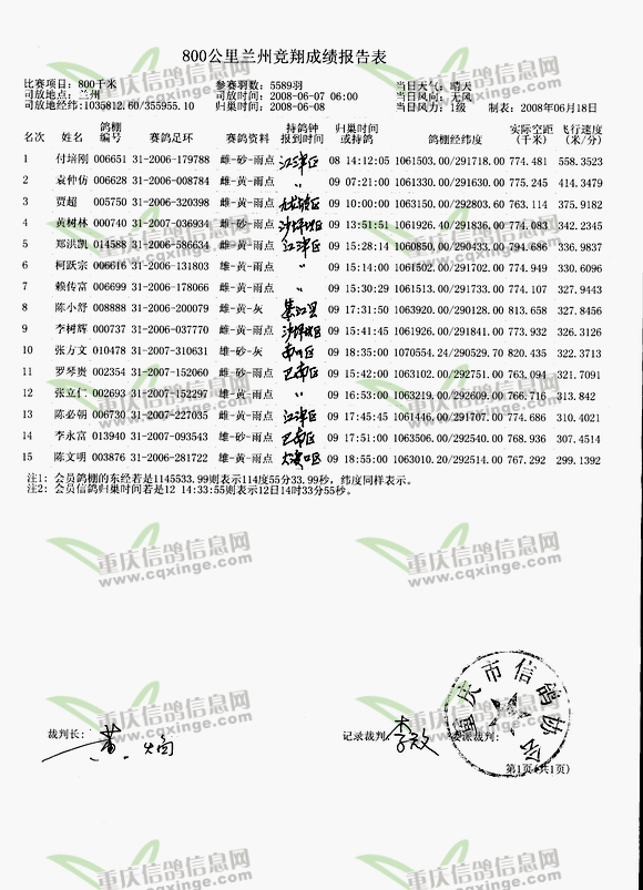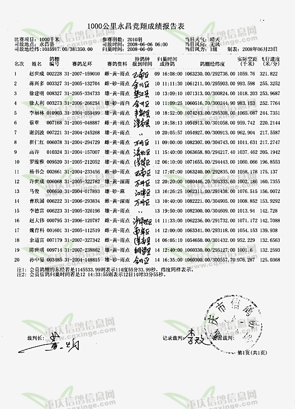 2008年春季重庆市团体赛成绩400公里 第一名 合川区 954.7813m/分 第二名 垫江县 907.2928 m/分 第三名 万州区 869.1429 m/分 500公里第一名 渝中区 977.2419m/分第二名 渝北区 976.9509 m/分第三名 江北区 956.4218 m/分700公里第一名 大足县 609.6429 m/分第二名 潼南县 586.6218 m/分第三名 合川区 478.1683 m/分800公里第一名 江津区 379.7733 m/分1000公里第一名 合川区 211.0457 m/分第二名 潼南县 190.1431 m/分第三名 万州区 177.3131 m/分