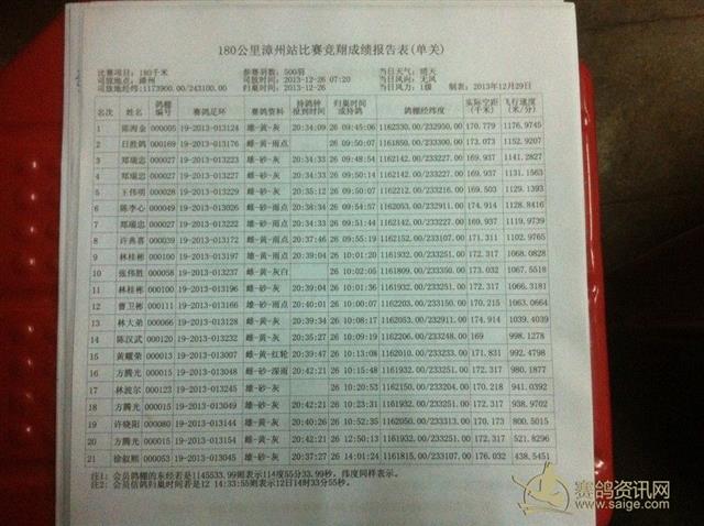 2013(冬)180公里漳州站《精艺杯》专环双关第一关站成绩