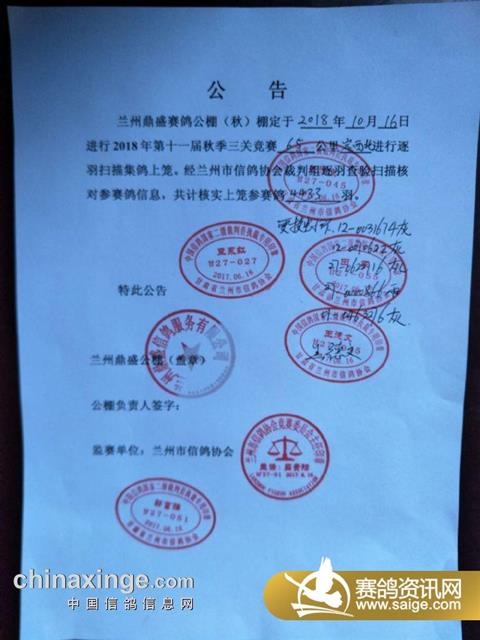 鼎盛赛鸽公棚(秋)10月16日65公里清棚集鸽上笼现场图