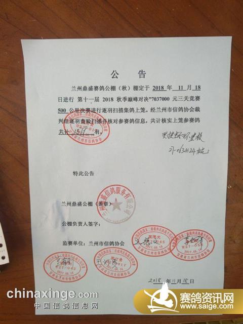 兰州鼎盛赛鸽公棚秋棚500公里决赛集鸽上笼现场图集