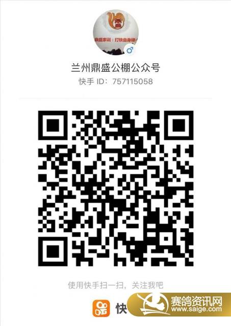 兰州鼎盛赛鸽公棚(春)棚公告 尊敬的广大鸽友: 2019年兰州鼎盛赛鸽公棚(春)棚赛鸽训放现已拉开帷幕,经研究决定,定于2019年2月22日晚集鸽,2019年2月23日进行第一次0公里训放。届时将会进行网络归巢数据直播。 欢迎大家关注兰州鼎盛赛鸽公棚快手APP账号(发布、直播公棚相关训放及比赛动态),观看、了解训放情况。 直播快手账号:757115058 快手二维码: