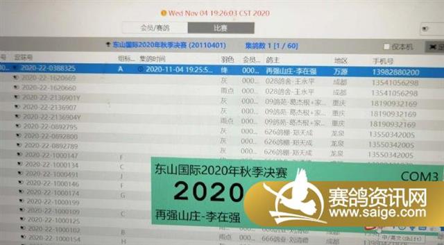 (金手指信鸽体育报道 编辑/向建华 四川/成都) 2020年11月4日,四川成都东山国际赛鸽中心对决赛参赛鸽进行了集鸽工作。
