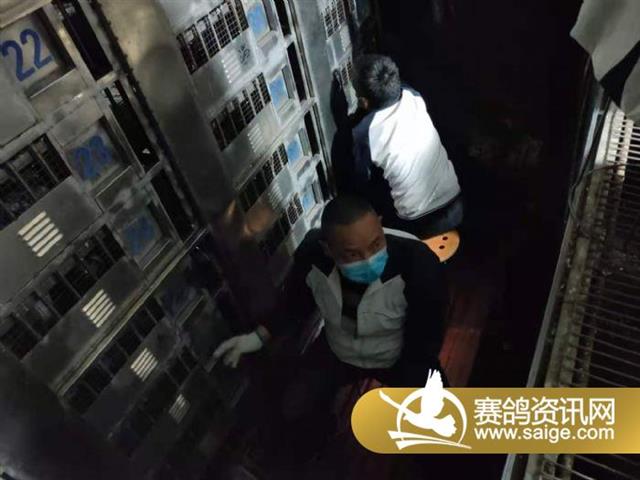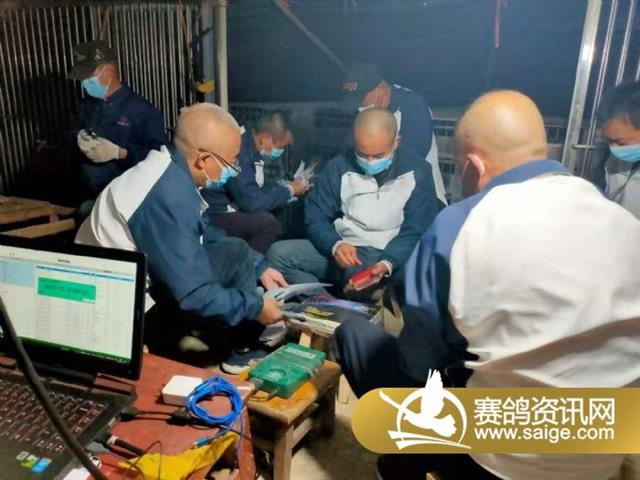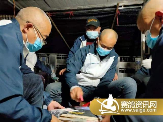 集鸽工作于2020年11月13日晚上7时许开始,现场由一台集鸽器进行工作,本次集鸽严谨,并且井然有序。集鸽现场采取逐羽抓取、逐羽扫描、逐羽加盖暗章、逐羽上笼的方式进行。截止到晚上10点30分左右集鸽工作完成,本次共计集鸽2118羽,紧接着公棚工作人员、裁判组、鸽友代表、媒体直播团队跟车出发前往司放地。